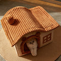With a charming arched roof and semi-enclosed structure, this luxury cat house not only serves as a warm hideaway but also adds a decorative touch to any room. The cozy, enclosed environment mimics a den-like retreat, perfect for cats who love their privacy while still being near their humans.